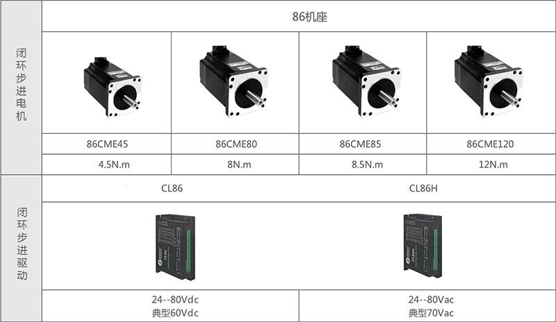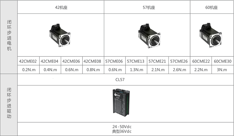 CL系列共提供CL57/CL86/CL86H三款驱动器产品,并标配42mm/57mm/60mm /86mm四种常用闭环电机。CL系列闭环步进产品,可避免定位丢步和减小跟踪位置误差、又能提升高速性能、降低噪音和发热等;可保证设备运行的可靠性和足够精准的定位精度,且免调试,是您提升生产效率减少维护的最优选择。经过三代持续升级、六年成熟应用,CL系列产品是您“既安心又省钱”的最为理想选择。更多...